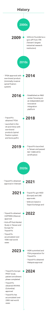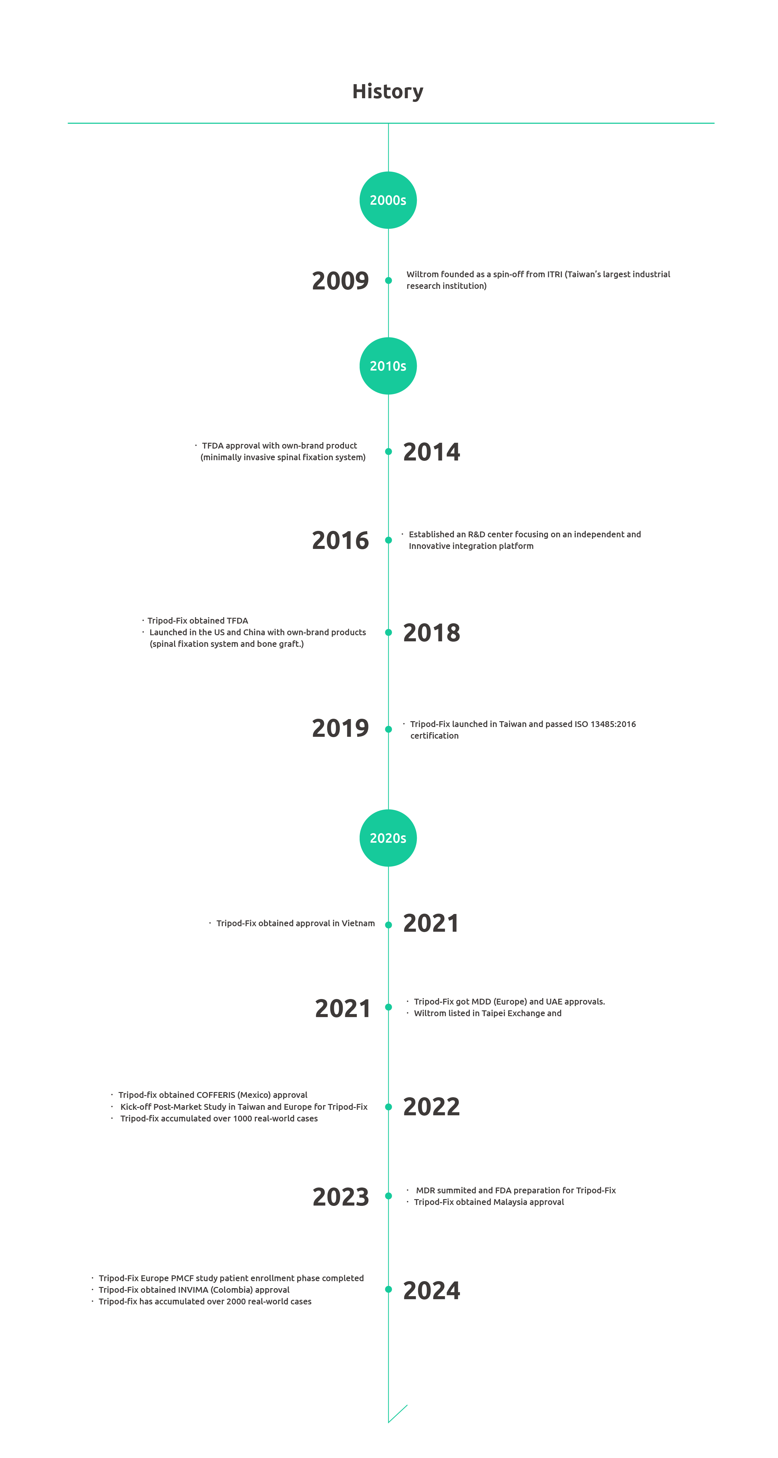 For over 15 years, Wiltrom is committed to developing innovative spinal surgical solutions, transforming concepts into clinical applications with high-quality medical devices. Wiltrom has specialized in advanced spinal surgical solutions, combining cutting-edge R&D, precision manufacturing, and world-class quality standards to improve patient outcomes globally.
