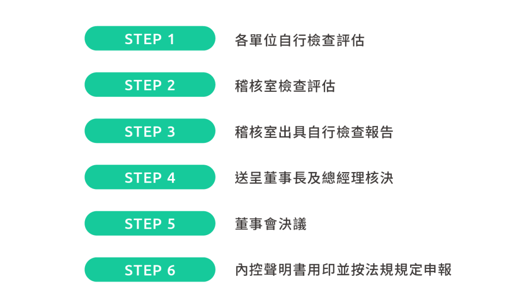 本公司及子公司每年至少辦理一次內部控制制度自行檢查作業,並由稽核室覆核各單位及子公司之自行檢查報告,同稽核單位所發現之內部控制缺失及異常事項改善情形,以作為本公司董事長及總經理出具內部控制聲明書之主要依據。自行檢查作成工作底稿,相關自行檢查報告及相關資料至少保存五年。