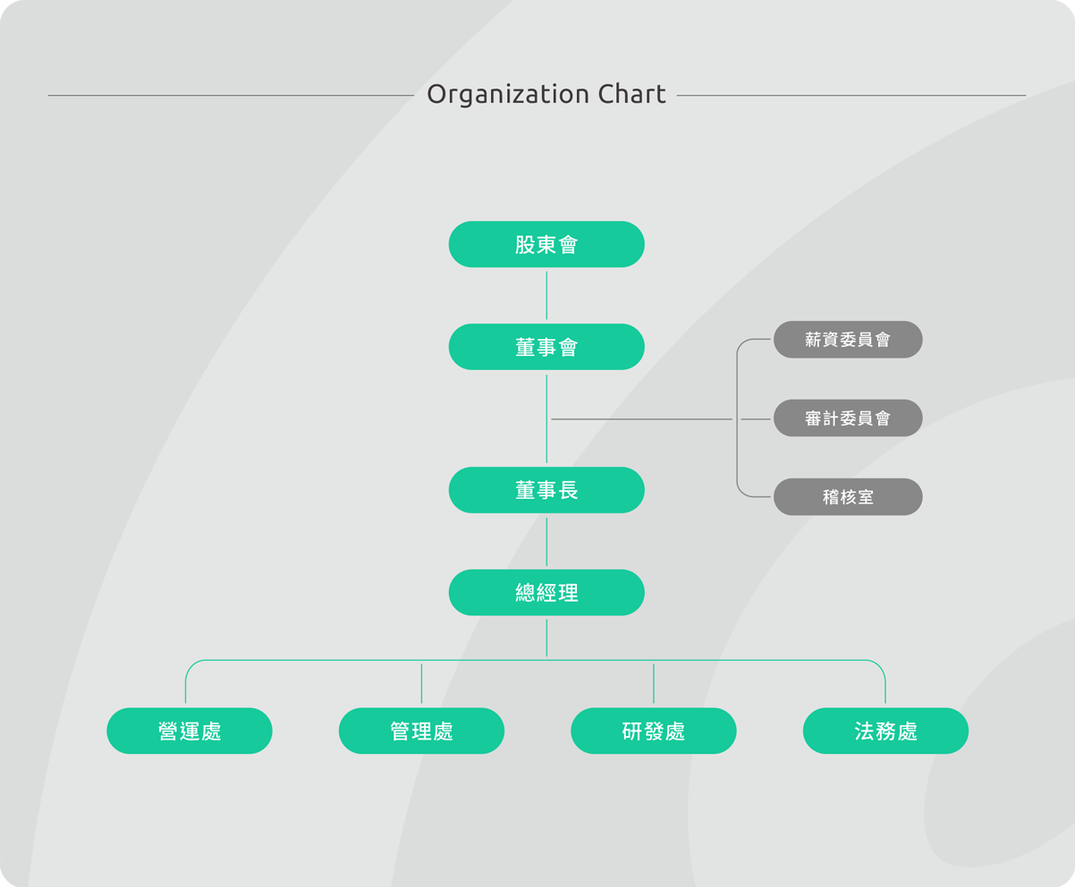 負責公司法律法規面向之策略及執行方向,確保公司運作符合法令規定。