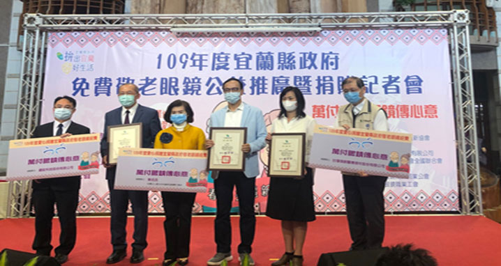 配合我國高齡人口照護及健保政策方針,參加宜蘭衛生局敬老眼鏡捐款活動,以行動回饋社會善盡企業社會